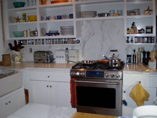 We are continuing to tweak at the carriage house kitchen. Today Kevin Wilkes and I played with where the marble sill should come out as the final dressing of the two sink windows. I plan to harbor some ferns on the sill and won't they be pleased.